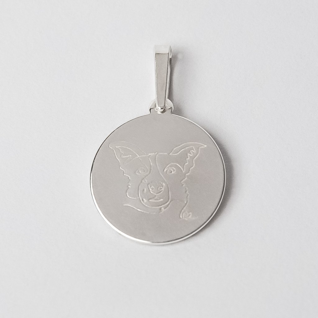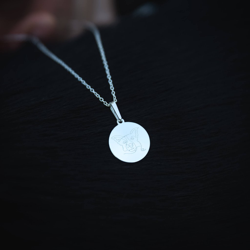 Spojení vašeho pejska a čistých linií na kulatém přívěsku rozzáří nejen váš den, ale i dekolt. Portrét zpracujeme podle fotky vašeho chlupáče do linky, která vystihne všechny důležité detaily. Pokud budete chtít, přidáme na přední či zadní stranu i pejskovo jméno. Stačí, když nám to napíšete do poznámky.