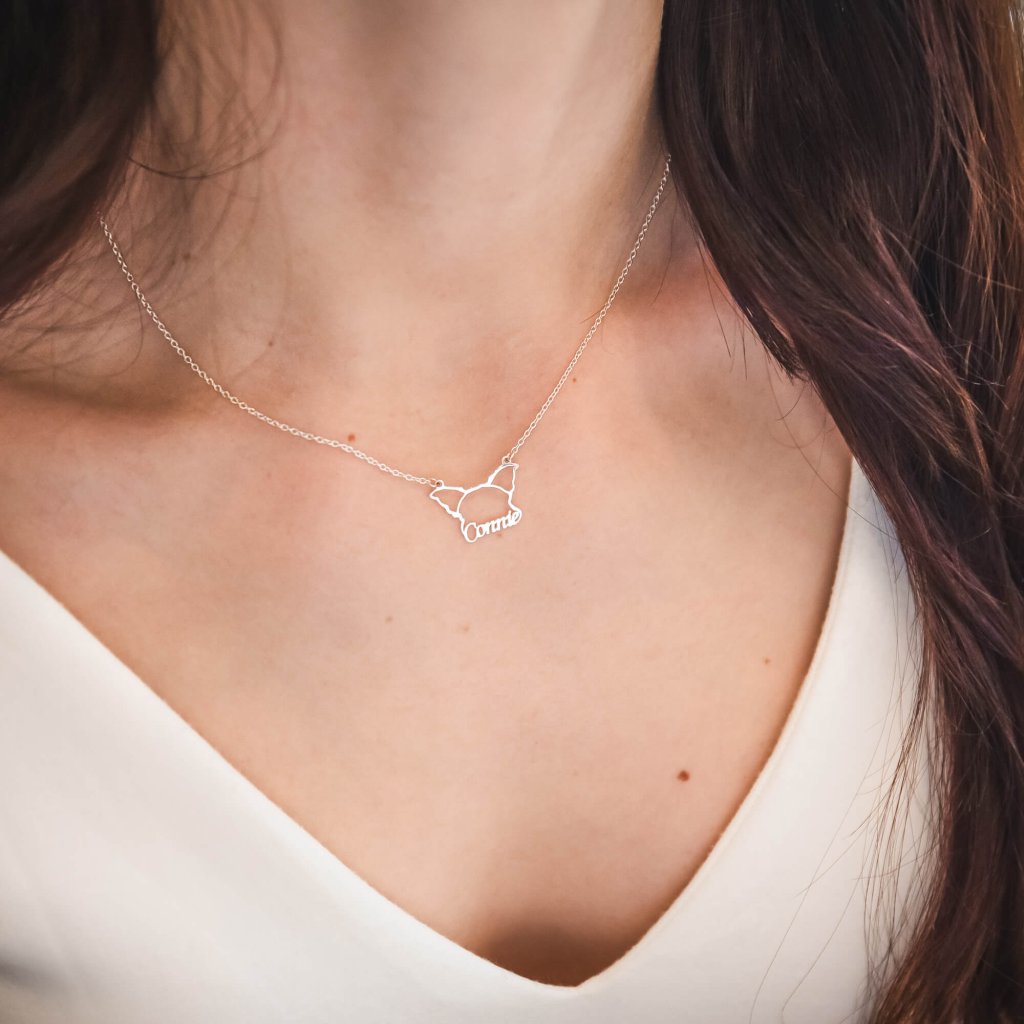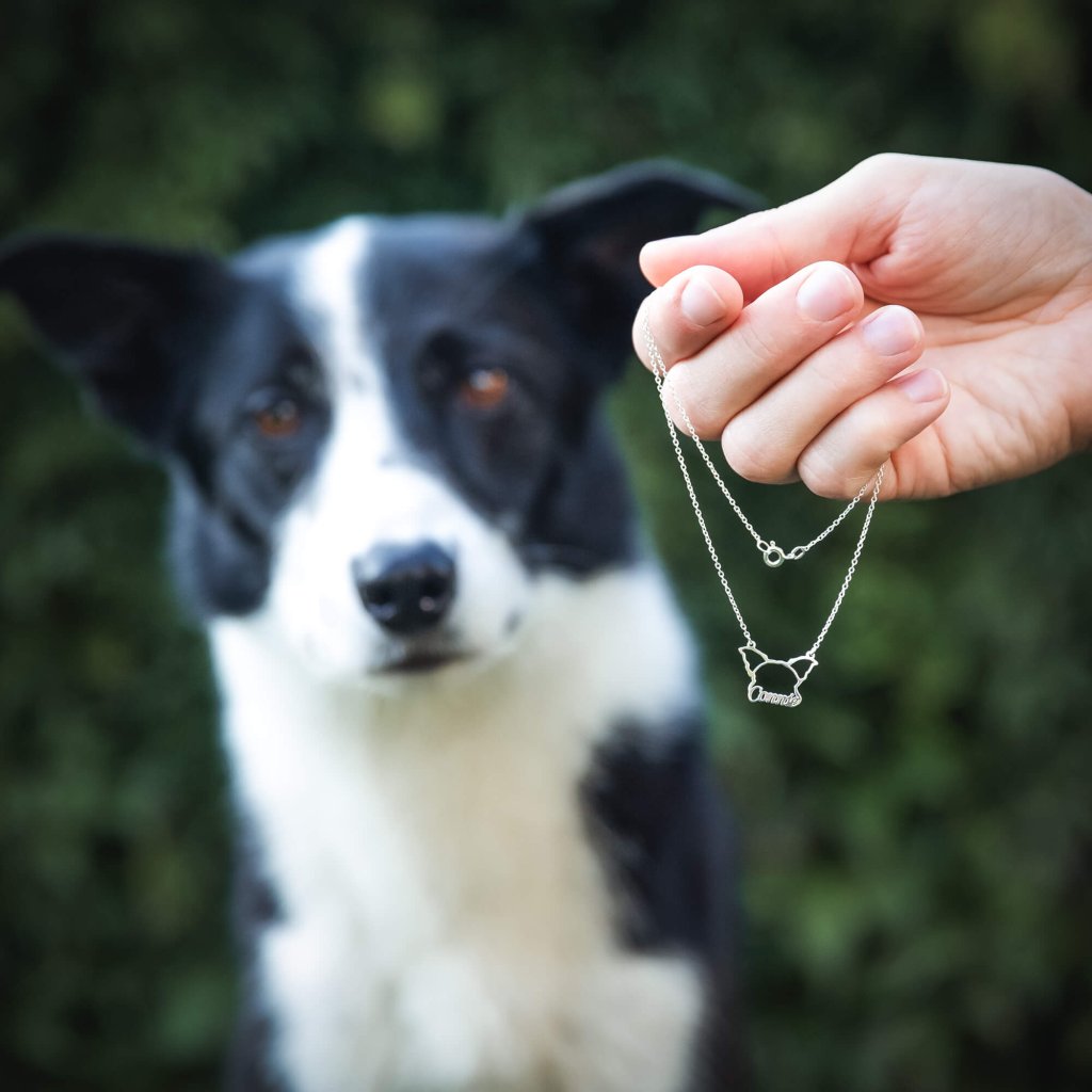 Přívěsek ve tvaru uší vašeho pejska. Jednoduše unikátní. Obrys oušek zpracujeme přesně podle fotky vašeho pejska, přidáme jeho jméno a jemný řetízek. Voilà. Takový šperk nebude mít nikdo jiný na světě.